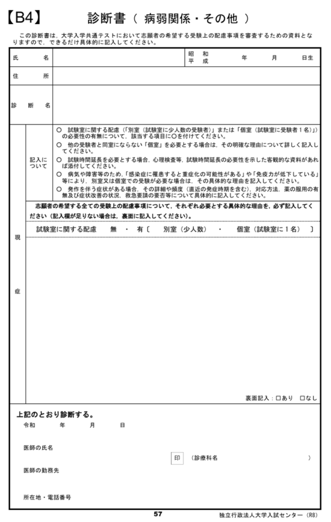また大学受験の共通テストに際しても、教室内でパニック発作を起こす、腹痛を起こすなどの症状がでる可能性が高い場合、別室受験などの配慮が可能となっております。診断書の作成可能ですので主治医に伝えて下さい。